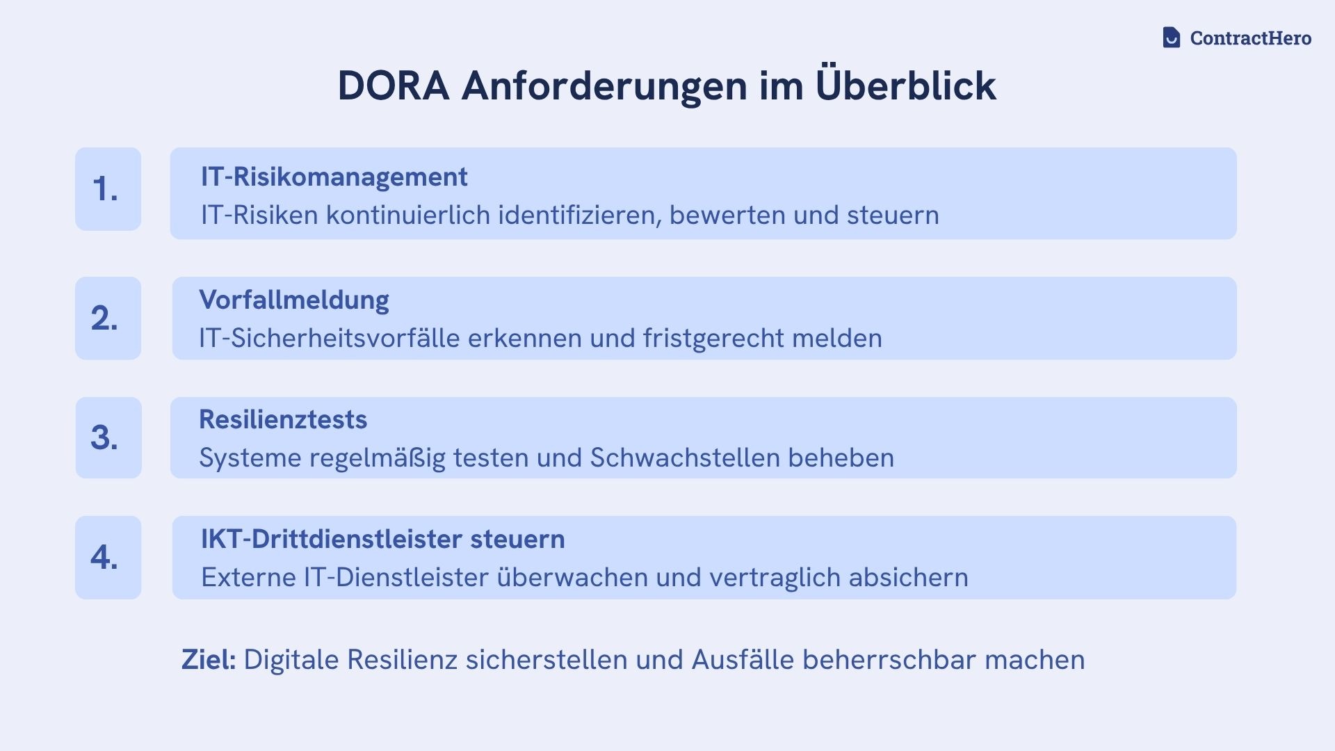 DORA verschärft bestehende Anforderungen deutlich und erweitert gleichzeitig deren Umfang.