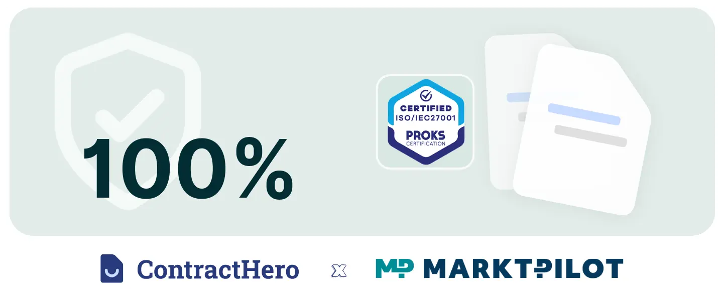 30 Minuten statt stundenlanger Suche, volle Transparenz über 150+ Verträge – und 100 % Audit-Readiness. Erfahren Sie, wie MARKT-PILOT sein Vertragsmanagement von einem dezentralen Risiko zu einem zentralen Erfolgsfaktor gemacht hat. Mit ContractHero hat das Scale-up alle Verträge und Dokumente an einem Ort gebündelt, Fristen automatisiert und klare Verantwortlichkeiten geschaffen. Das Ergebnis: mehr Effizienz, weniger vermeidbare Ausgaben und die Sicherheit, selbst strengste Compliance-Anforderungen wie ISO 27001 souverän zu erfüllen.